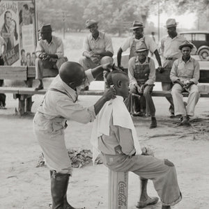 The photo of African American men waiting their turn to get their hair cut outside in Natchez, Mississippi by Marion Post Wolcott is part of a larger body of work known as the Farm Security Administration (FSA) photographs. The FSA was a New Deal agency established in the 1930s to help improve the living and working conditions of rural Americans during the Great Depression.