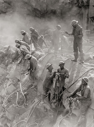 Through this early 1940s photograph, we witness, and honor, the dirty and tired drillers of the Fort Loudon Dam, recognizing their indomitable spirit and the integral role they played in shaping Tennessee's history. This amazing photograph encapsulates the challenging conditions faced by these hardworking individuals as they labor tirelessly.