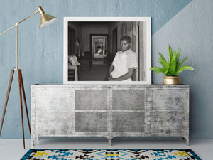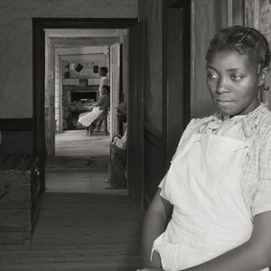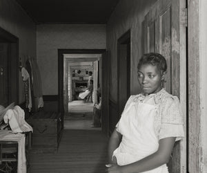 In this striking portrait captured by Jack Delano in 1941, we are introduced to a black family in Georgia. The photograph showcases layers of depth and beauty, inviting our gaze to explore the scene. Standing in the foreground, a young girl captures our attention, drawing us further into the frame. As our eyes move along the hallway, we encounter an older man sitting with a gaze fixed straight ahead, emanating a sense of contemplation. Progressing deeper into the composition, we discover two women leaning against a kitchen wall, their gazes directed forward. The composition evokes a sense of curiosity and invites us to reflect on the stories and lives captured within this single image.
