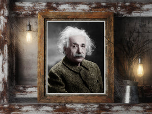 This iconic photo features the brilliant Albert Einstein taken in 1947. Capture a glimpse of the renowned physicist, known for his groundbreaking contributions to the field of science and his profound impact on our understanding of the universe. This image offers a window into the essence of Einstein's genius, as his gaze and thoughtful expression invite you to explore more about this genius. Celebrate the legacy of one of the greatest minds in history through this colorized photograph, a must-have for admirers of scientific exploration and intellectual curiosity.