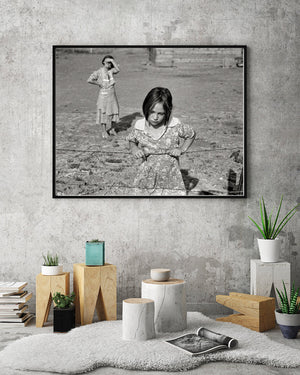 Dorthea Lange's poignant portrait from 1939 portrays a young girl, radiating a sense of sadness, while her mother gazes at her with evident concern in the background. This evocative composition flawlessly encapsulates the hardships experienced by numerous families during the early 20th century, serving as a poignant reminder of the enduring significance of family in our present day.