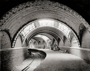 City Hall, also known as City Hall Loop, was the original southern terminal station of the first line of the New York City Subway, built by the Interborough Rapid Transit Company (IRT), named the "Manhattan Main Line", and now part of the IRT Lexington Avenue Line. Opened on October 27, 1904, this station, located underneath the public area in front of City Hall, was designed to be the showpiece of the new subway. The platform and mezzanine feature Guastavino tile, skylights, colored glass tilework and brass chandeliers. The Rafael Guastavino-designed station is unique in the system for the usage of Romanesque Revival architecture.