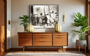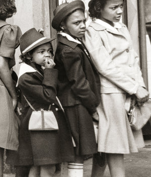 Go back in time to the bustling streets of Chicago, Illinois in 1941 with this photograph. The scene captures the excitement and anticipation of African American children lining up outside a movie theater, eagerly awaiting its opening. Their faces are filled with anticipation and curiosity, reflecting the joy and wonder of experiencing the magic of cinema. The theater posters add to the nostalga of the image, transporting you to a bygone era of entertainment. This enchanting photograph is a window into the rich cultural history of Chicago and serves as a reminder of the power of cinema to bring communities together.