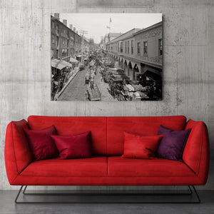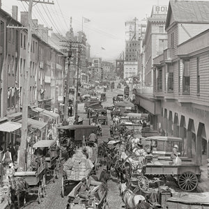 Experience a glimpse into the past with this captivating vintage photograph of Light Street in Baltimore, Maryland. Taken in 1906, the image takes you back to a bygone era, where horse-drawn carriages and bustling city life filled the streets. Marvel at the architectural details of the buildings lining Light Street as you look north, immersing yourself in the charm and character of historic Baltimore. This fascinating snapshot of urban life from over a century ago offers a unique perspective on the city's rich history and evolution. Transport yourself to a different time as you explore the streets of Baltimore through this remarkable photograph.
