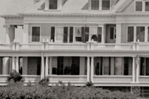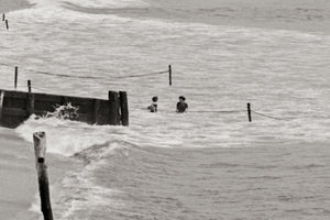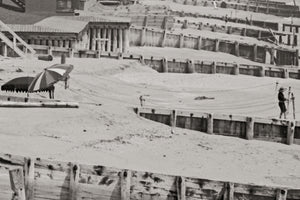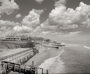 Transport yourself to the serene Long Branch Beach in Elberon, New Jersey, as captured in a captivating photograph from 1910. This picturesque scene portrays the epitome of coastal tranquility, with fluffy clouds adorning the sky and gentle waves rhythmically lapping against the shore.
