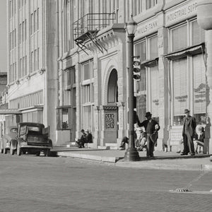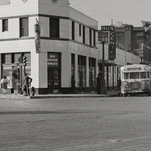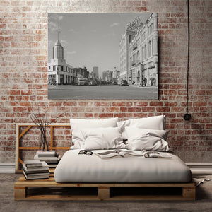 In a striking snapshot taken in January 1942, the vibrant Main Street of Fort Worth, Texas comes to life. Underneath a clear sky, prominent signs for Monnig's Berkshire Stockings and Center Drug Store grace the scene, anchoring the bustling cityscape. The street is alive with a mix of cars and pedestrians. This street view offers a glimpse into the daily rhythm and energetic atmosphere of Fort Worth in 1942.
