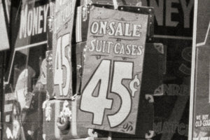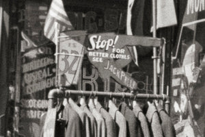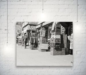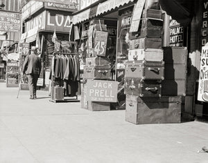 In this vibrant snapshot, the storefronts beckon with their enticing displays of affordable treasures. Jack Prell is selling suitcases, priced at a mere 45 cents, catch the eye, promising new adventures and journeys yet to be taken. Alongside them, racks of clothes present an opportunity for fashion-conscious individuals to express their unique style without breaking the bank.
