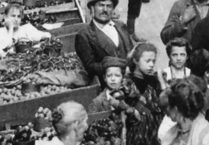 In this busy tableau, Mulberry Street comes alive with a tapestry of human interaction. The street is teeming with individuals going about their daily routines, creating rich sights and sounds. People can be seen shopping, selling their wares, sitting and conversing, while others curiously look at the camera, capturing the spirit of the moment.
