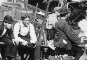 Step into the bustling streets of Little Italy, New York, with this photograph that captures the busy daily life of the immigrant community on Mulberry Street. Taken during a lively moment, the scene is filled with people engaged in various activities, creating a captivating snapshot of the neighborhood's vibrant atmosphere.