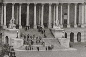 In the foreground, proudly unfurled, the American flag stands as a symbol of unity and patriotism. As if choreographed, people ascend the steps of the Capitol.