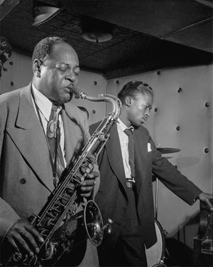 Step into the realm of musical legends with this captivating 1947 photo featuring Coleman Hawkins and Miles Davis, two iconic jazz musicians. This epic image encapsulates the mastery, innovation, and soulful expression that defined their contributions to the world of jazz. Delve into the rich tapestry of musical history of these legendary figures through this remarkable photograph.