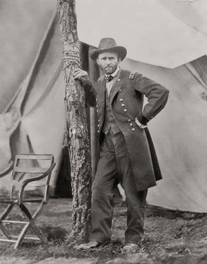 Delve into history with this remarkable photograph taken in 1864 by Egbert Guy Fowx, showcasing the distinguished figure of Ulysses S. Grant. Step back in time as you witness General Grant, standing resolutely outside a tent, embodying the essence of leadership during a pivotal period in American history. This rare glimpse offers a tangible connection to the renowned military strategist and the events that unfolded during the Civil War.