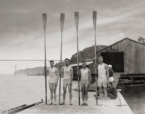 1913, University of Pennsylvania's varsity four-oared crew team at Poughkeepsie, New York, for an intercollegiate regatta.