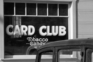 Outside the two old cars capture the essence of the era, evoking a sense of the time. The combination of the pool room, the men deep in conversation, and the classic automobiles creates a photo frozen in time, preserving the spirit of that era.