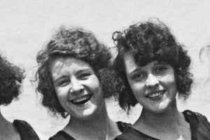 Capture the spirit of youthful joy and carefree summer days with this captivating photograph from 1923. Transport yourself to the sun-soaked beach where a group of young women, affectionately known as "bathing beauties," strike a pose and revel in the delights of the seaside.
