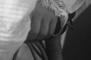 Step into a girl's fashion past with this portrait of a young girl adorned in a delicate white lacey dress and a pointed hat. The contrast between her elegant attire and the dark background adds depth and highlights her presence. Taken in the late 1800s or early 1900s, this timeless photograph captures the innocence and grace of the Victorian era. It's a stunning photo and evoke a sense of nostalgia.