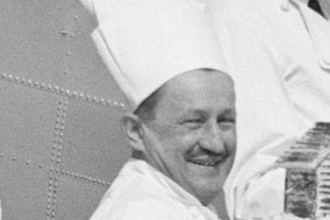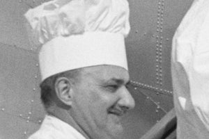 October 4, 1938. "Cakes for sky riders. Air travelers leaving Washington Airport during National Air Travel Week, Oct. 2 through 9, are being given a special treat. Cakes baked from their favorite recipes are being put aboard each plane by chefs of the leading hotels in the Capital. Marjorie McKinnon, Eastern Airline hostess, is pictured receiving the delicacies from (left to right) Theophile Homberger, Hotel Hamilton; Eddie Weber, Shoreham Hotel; Joseph Cattaneo, Hotel Washington; Fritz Meissner, Hay-Adams; Abraham Grob, Wardman Park; Joseph Tucci, Raleigh; Jacques Haerringer, Shoreham; Otto Merz, Willard."