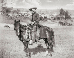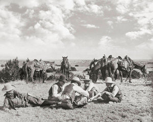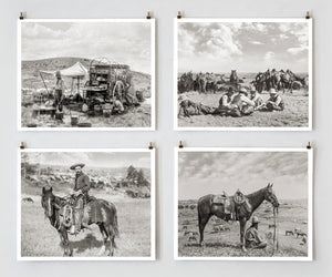 Calling all Cowboys! Photos are taken in either the late 1800s or the very early 1900s. Enhance your wall decor with this collection of four black-and-white photos capturing cowboys. Each photograph showcases the rugged terrain, adding a touch of Western charm to your space. Perfect for your country or farmhouse look.