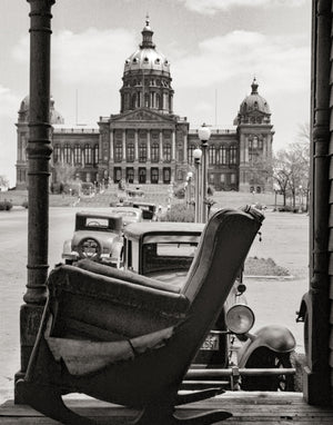 This vintage photo of the Des Moines State Capitol taken in May 1940 by photographer John Vachon gives a distinctive view of the neoclassical architecture of the building. Captured from a home porch nearby, the image offers valuable insight into the city's past.