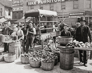 Introducing our captivating "Nostalgic Food Heritage Collection," featuring three vintage photographs that transport you back in time to the early 1900s when farmers brought their food to the public. This curated collection celebrates the vibrant and diverse culinary culture of the past, capturing the essence of food carts and bustling farmer's markets. Whether displayed as a collection or individually, these images remind us of the enduring importance of local food culture in shaping our shared heritage.