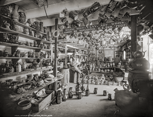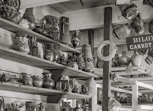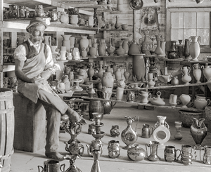 Here sits George Ohr in his studio in Biloxi, MS, in 1901 surrounded by all his vessels.