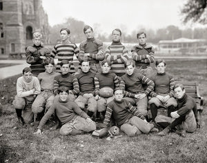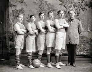 Look at these historical photos of Georgetown University in this captivating collection from the turn of the century! The first captures the poised and determined Georgetown University basketball team, while the second showcases the skilled football team, both taken in the early half of the 1900s.
