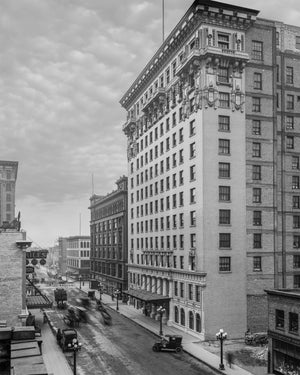 Marvel at the architectural beauty of this historic hotel. The Hotel Radisson stands tall and majestic, a testament to the exquisite craftsmanship and attention to detail of the time. It's timeless charm and classic design capture the essence of luxury and sophistication.
