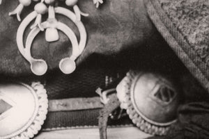 Edward Curtis's expert composition beautifully captures the intricate details and textures of the woman's attire, allowing viewers to appreciate the artistry and cultural significance behind each element. The beads, silver, and traditional blanket showcase the depth and richness of Navajo aesthetics.