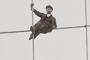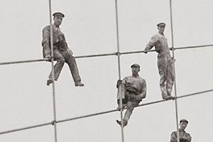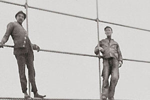 "Brooklyn Bridge showing painters on suspenders" photographed by Eugene De Salignac, 1914.