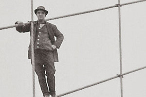 As the sole photographer for the department from 1906 to 1934 (in 1916 it changed its name to the Department of Plant & Structures), he documented the creation of the city's modern infrastructure—including bridges, major municipal buildings, roads and subways. Most notably, he documented the construction of the Manhattan Bridge and the Queensboro Bridge, and the Manhattan Municipal Building but his most famous image is that of painters posing nonchalantly on the cables of the Brooklyn Bridge. Using a large-format camera and 8x10 inch glass-plate negatives, he shot over 20,000 images in his career. Most of these negatives and over 15,000 vintage prints are held by the New York City Municipal Archives. Into his 70s de Salignac was still climbing bridges and actively working, but he was forced to retire in 1934 despite a petition to Mayor La Guardia. [courtesy of Wikipedia].