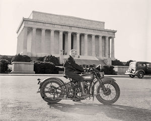 This captivating photograph, taken on September 15th, 1937, immortalizes Sally Halterman's achievement as she confidently sits astride her motorcycle in front of the iconic Lincoln Memorial. Her determination and passion for riding shine through, challenging stereotypes and paving the way for other women to follow in her footsteps.